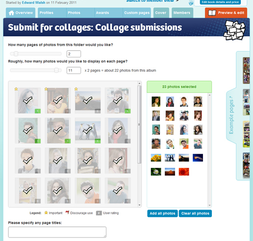 When you first load this page, the list of photos to include is automatically generated based on importance and ratings — but you’re free to adapt this to your liking. You can also use the sliders to adjust the amount of photos you’d like to display on each page, along with the amount of pages you’d like them to span over.