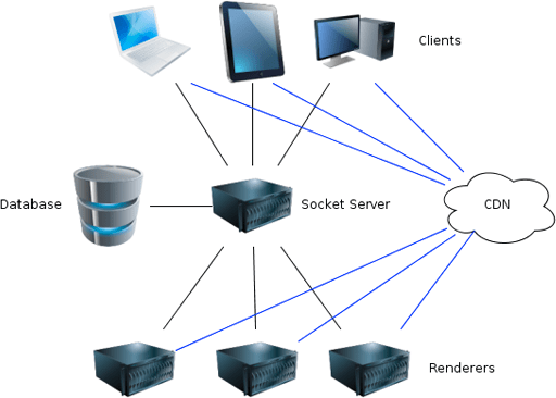 The biggest change for the new system is that the front-end is now a single-page web-app, using Backbone.js which talks to the server and listens over WebSockets (or socket.io fallbacks) for updates. The socket connections are made to a cluster of Node.js processes, synchronising state using Redis. We use PostgreSQL for the database, fronted with a lightweight API upon which the rest of the system is built.